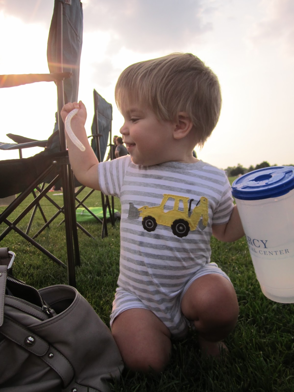 it wasn't ideal to have everyone there, but they did well. matt watched the big boys on the playground right next to her field and manning played with my water cup. manning then spent the rest of the time climbing in and out, in and out, in and out of the wagon. seriously, like 20 minutes. our friends were cracking up.
